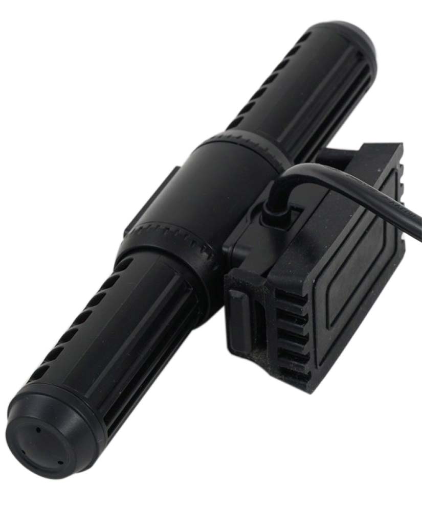 Thepower outlet comes from the top. The Gyre, like all other Wavemakers not named EcoTech has the power outlet on the wet side of the aquarium. Since Gyres are places near the top of an aquarium, I don’t feel it takes away from the look of the tank. It some display tanks, it may blends into the backgrounds and look like part of the return.