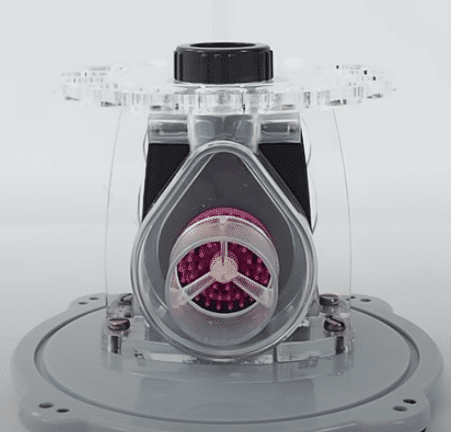 The Nyos skimmer prides itself by it’s extreme performance. This is a result of the massive amount of air and water it drives through it’s skimming chamber. This is achieved by their Nyos Twister technology. The twister is an additional blade that is added to the usual bubble plate you will see in most protein skimmers. This blade gives the bubbles an additional cycle within the bubble vortex. What this does is create additional contact time for the air bubbles in the water column.