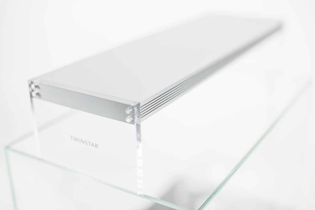 Twinstar’s craftsmanship is top notch. The thing I love about this light is there are no fans. That makes the light ideal for quiet rooms. The light is not made in China, and it shows. It’s sleek smooth, and looks very clean presented on a tank. They can either come in aluminum brackets or acrylic ones. I personally prefer the acrylic bracket