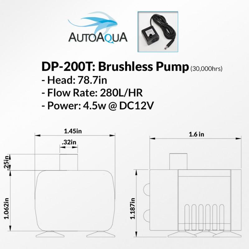 Controller/Sensor, Power Adapter, DC brushless pump capable of pumping to a height of ~6.5 feet and a maximum flow rate of ~74 gph and 6.5′ of water tubing with magnetic mount tubing holder. Will work in complete darkness.