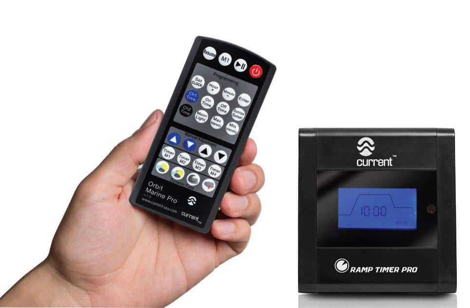 Each Orbit Marine PRO system includes an LED light fixture, adjustable docking legs (pre-installed) 24VDC UL approved transformer, Ramp Timer Pro LED controller with IR remote, controller mounting bracket and complete instructions. Dual Orbit Marine PRO x2 Systems include an additional LED fixture and adjustable hanging kit.