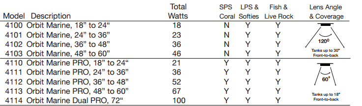 We carry the following Orbit Marine Pro LED reef light models:
