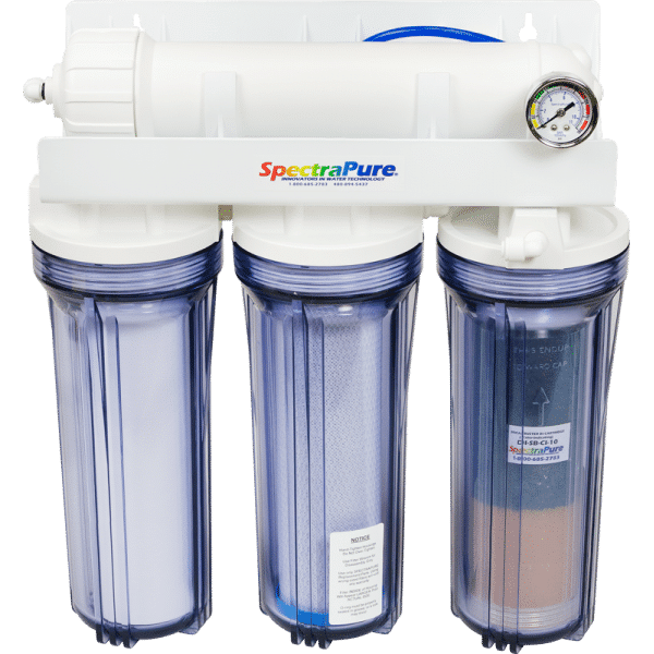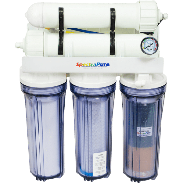SpectraPure® MaxPure™ RODI System incorporates a high-silicate removal TFC membrane, 1 micron MicroTec™ Sediment and Carbon Block Filters, and a custom formulated 10 inch Color-Change DI Cartridge. High-purity water at an economical price, MaxPure™ RODI Systems maximize pure water production through application of the commercial-grade deionization resins used in our specialty deionization cartridges. MaxPure™ RODI Systems are available with production rates ranging from 25 gpd (95 LPD) to 180 gpd (680 LPD)
