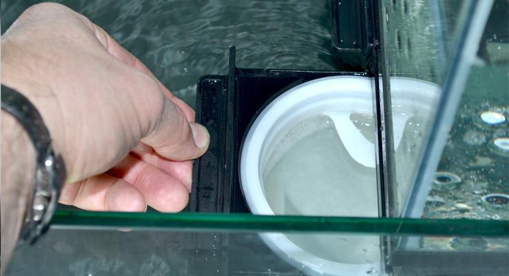 Removable surface-skimming combs surround the top of the centrally located overflow box that houses the downpipe, sump return pipe and the discreet multi-directional “eyeball” return outlet nozzle. In the event of a blockage in the regulated downpipe, an additional emergency overflow pipe provides an unrestricted free flow of aquarium water directly to the sump.